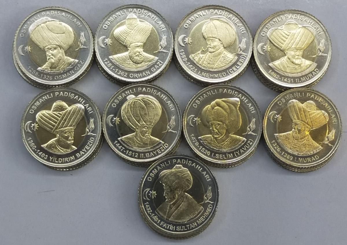 9 FARKLI PADİŞAHLAR SETİ ÇİL BİMETAL 1 LİRA