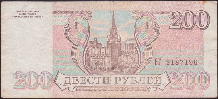 Rusya 200 Ruble 1993 Çok Temiz +