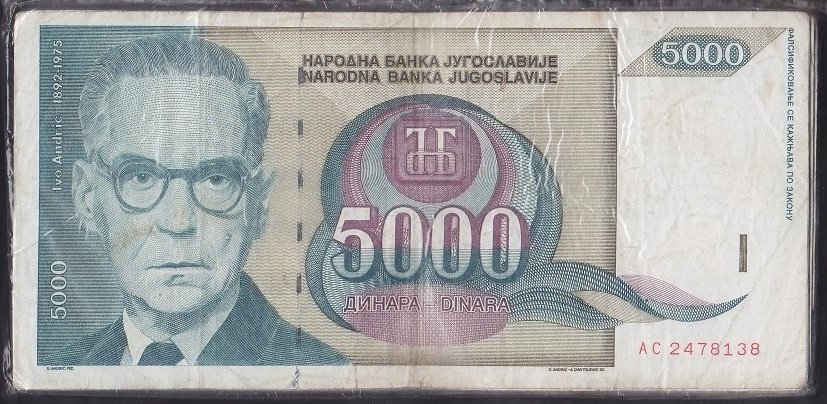 YUGOSLAVYA 5000 DİNAR 1992 KULLANILMIŞ DESTE (100 ADET)